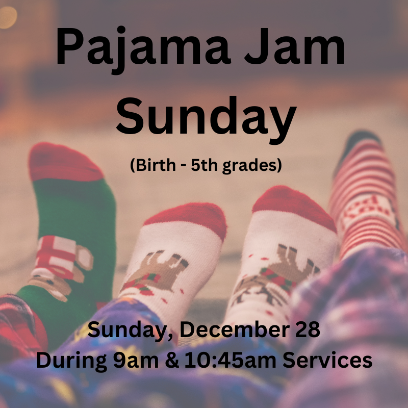 All children, birth – 5th grade, are invited to wear their favorite PJ’s to church during our regular Sunday services on December 28th for a cozy after Christmas morning. Ages 2 and up will get a special snack. (Our elementary children will enjoy some hot chocolate with their snack.)