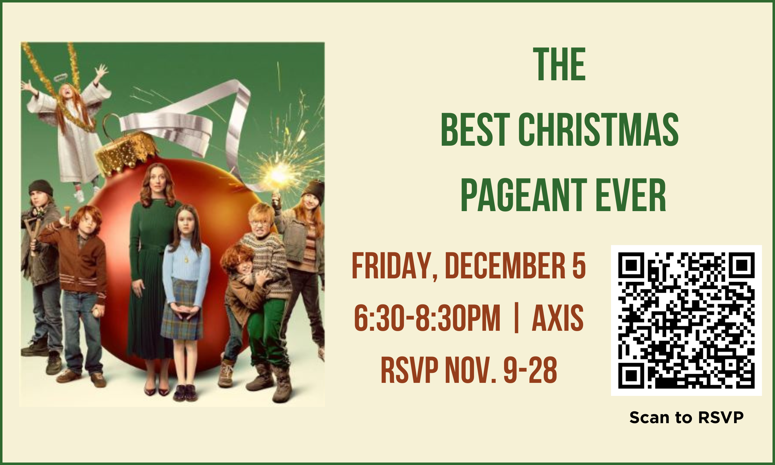 Families of all ages are invited to join us for a special evening in the AXIS from 6:30-8:30pm on Friday December 5th as we welcome in the Christmas season. We’ll be watching “The Best Christmas Pageant Ever” while enjoying popcorn & movie theater candy.. Bring your lawn chairs, blankets, sleeping bags, and even wear your […]